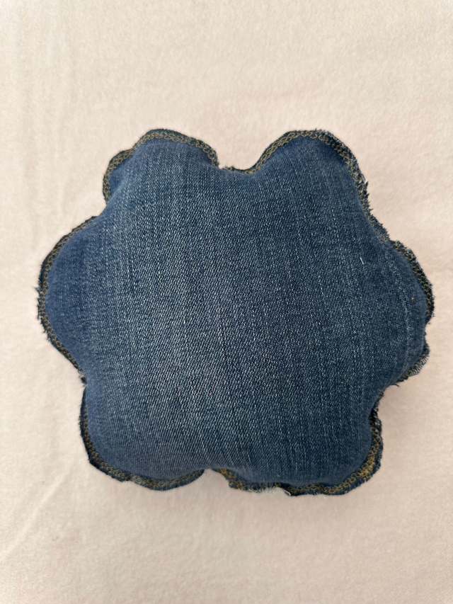 De jeansspeeltjes met pieper worden gemaakt van gedragen spijkerbroeken, de vulling komt uit kussens die afgeschreven zijn maar nog schoon en nog heel goed te hergebruiken is.